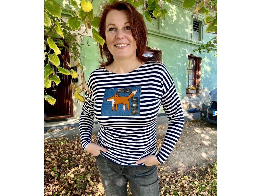 Na předním díle je ručně vytvořená aplikace z ovčí vlny – originální motiv, který jinde nenajdete.