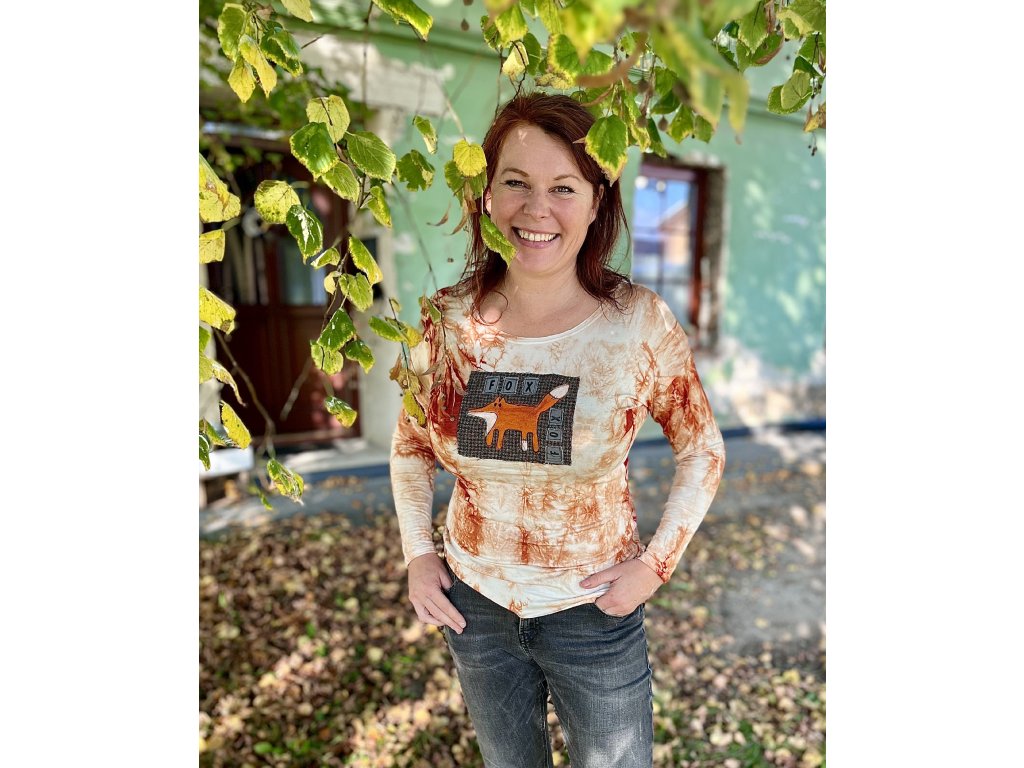 Smetanovo - skořicová bambusová viskóza s různými vlněnými motivy: Liška dlouhý rukáv velikost M
