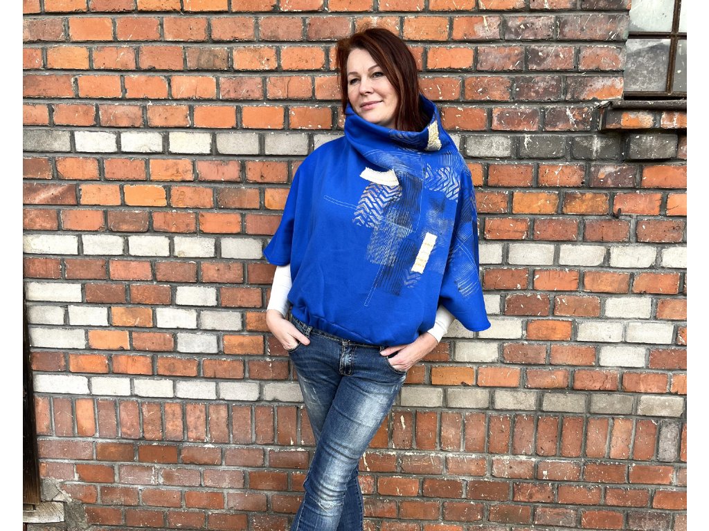 Výrazné, pohodlné a nepřehlédnutelné. Toto královsky modré pončo je ušité z kvalitní české teplákoviny vyšší gramáže, která krásně drží tvar, příjemně hřeje a zároveň zůstává měkká na dotek.